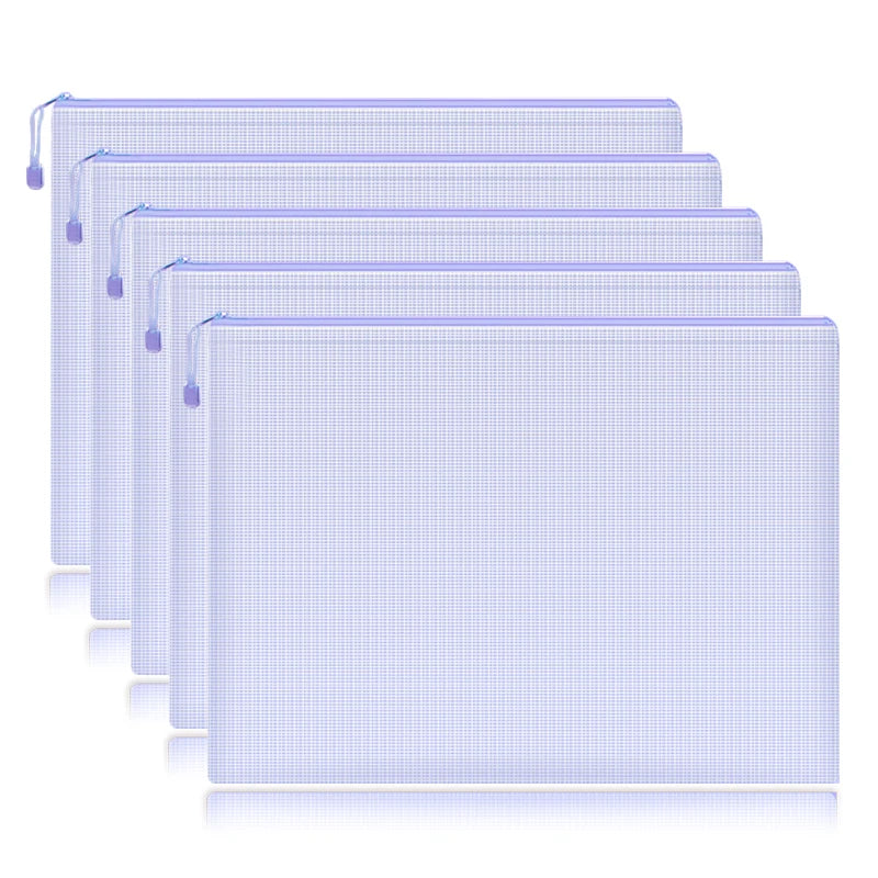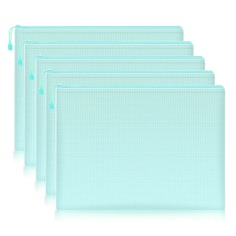 5Pcs, Waterproof Mesh Zipper Pouch, Document Bag, File Folders, A4, School, Office Supplies, Pencil Case, Storage Bags