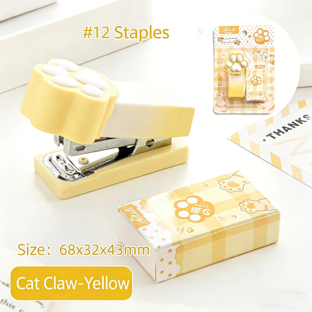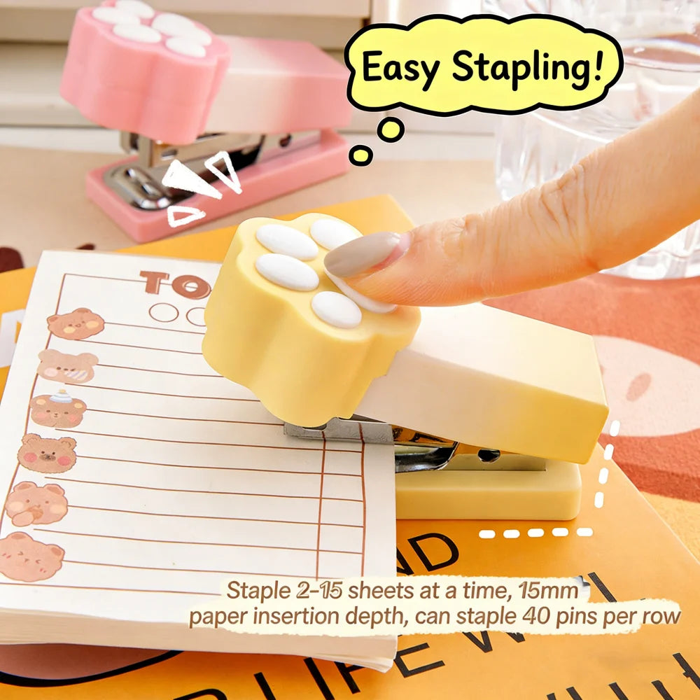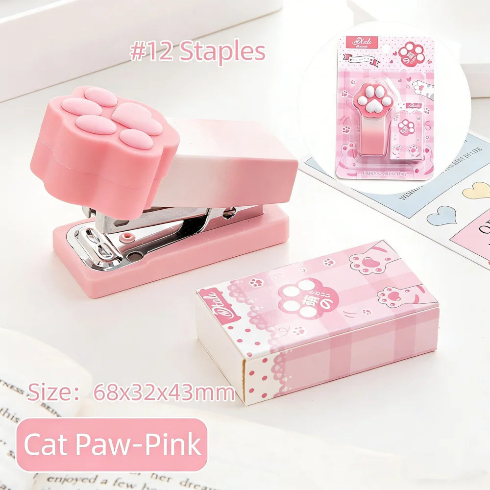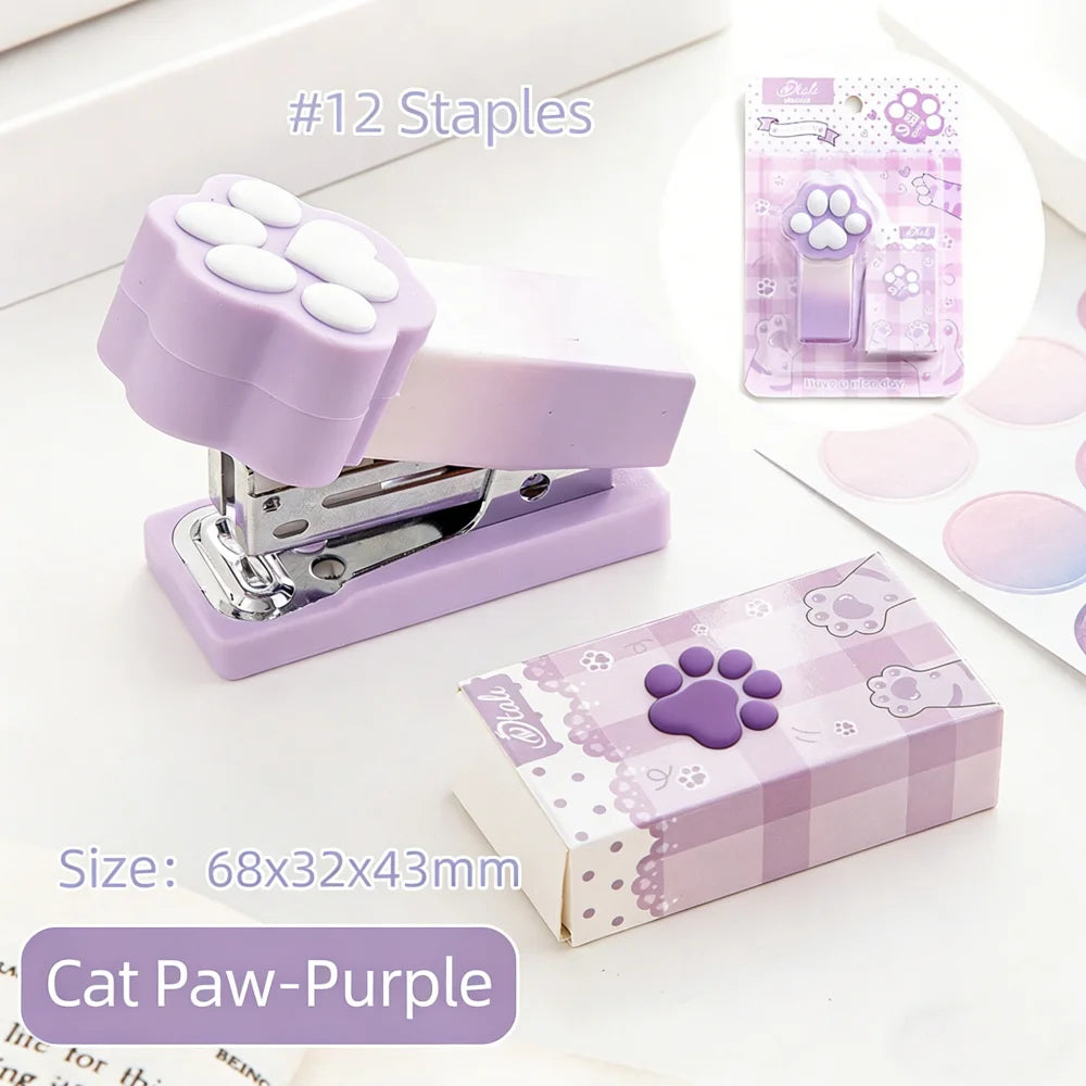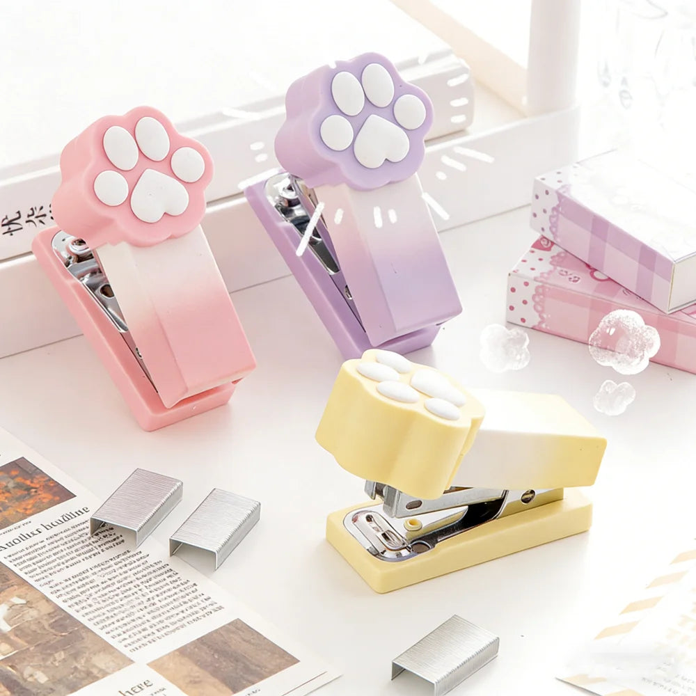 Kawaii Gradient Cat Paw Mini Stapler Portable Cute Stapler Student Binding Tool Cute Stationery School Office Supplies